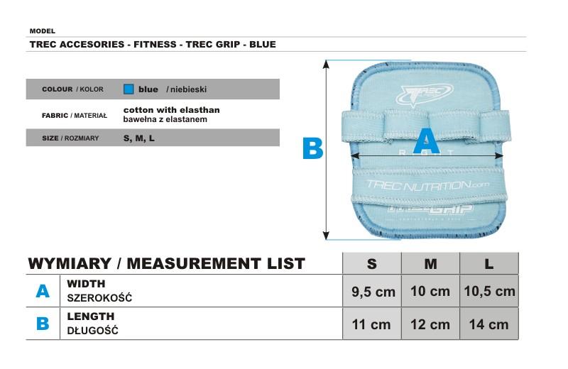 TREC GRIP FITNESS BLUE to innowacyjne, lekkie uchwyty doskonale zastępujące klasyczne rękawice treningowe. Dzięki zastosowaniu specjalnej pianki neoprenowej oraz odpornej i przyczepnej powłoki są wygodne, trwałe i zabezpieczają przed wyślizgiwaniem się ciężaru z dłoni. TREC GRIP pozwalają zachować mocny i pewny uchwyt podczas treningu na maszynach i z wolnymi ciężarami. Jednocześnie TREC GRIP zapewniają optymalną wentylację, zapobiegając poceniu się dłoni, chroniąc je przed otarciami i nieprzyjemnymi odciskami.